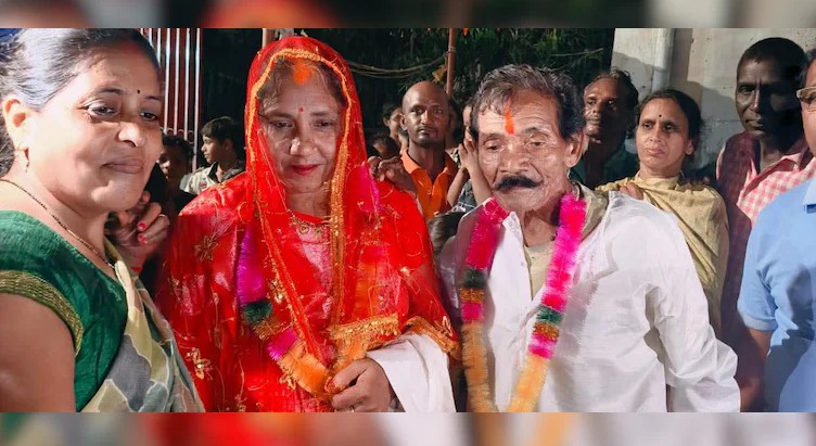 बिलासपुर में 70 साल के दूल्हे और 30 साल की दुल्हन की अनोखी शादी, मोहल्ले ने दी बधाई।